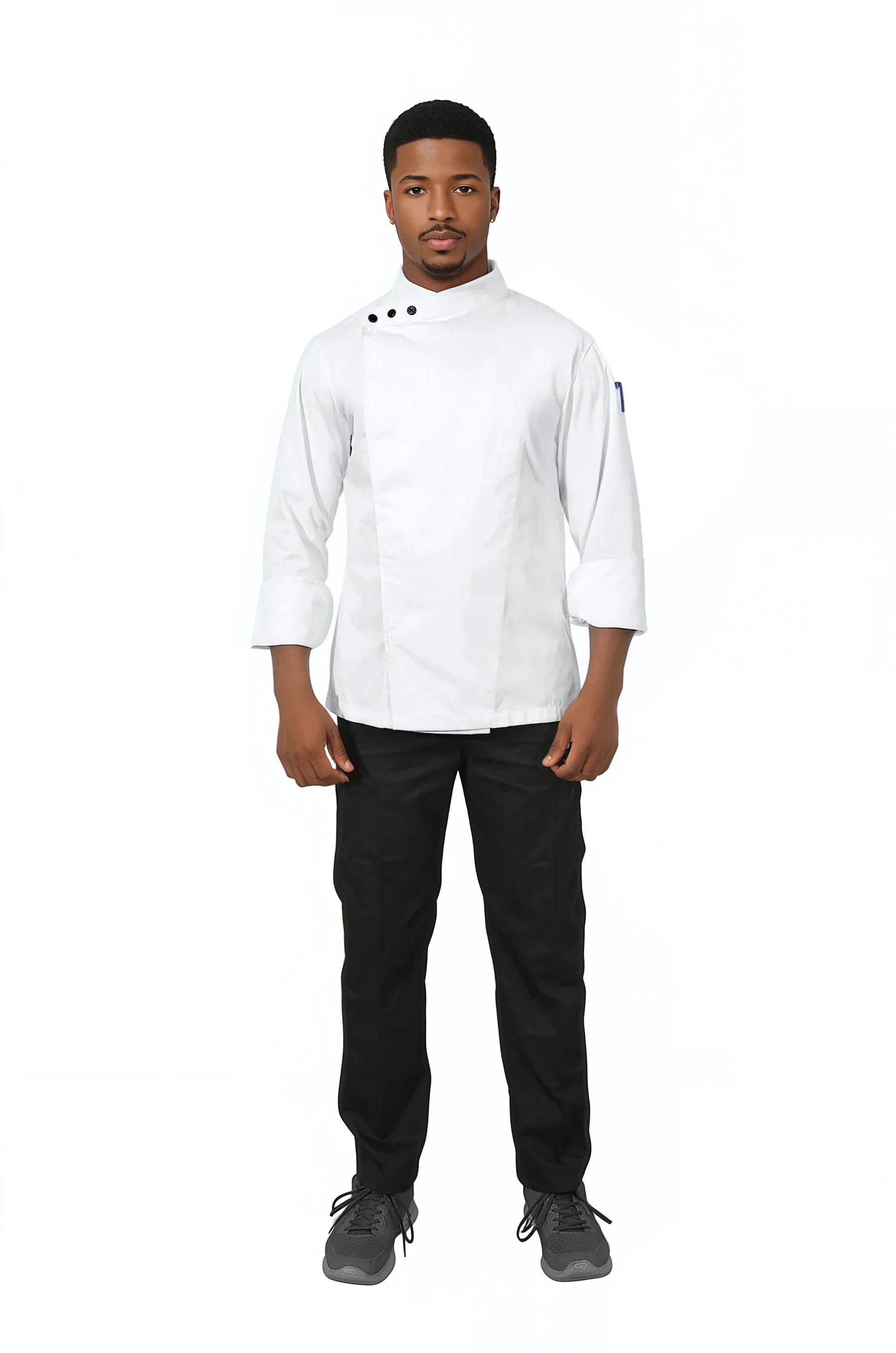 The ProChef Attire with its distinct 3-button detail not only elevates your style but also ensures unmatched practicality, making it the ideal choice for chefs who value professionalism and functionality.